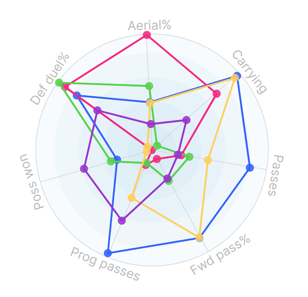 Whether you focus on Licha or De Ligt, Harry Maguire, Leny Yoro, or Ayden Heaven, each possesses a standout trait, from defensive duel % wins on ground or in the air, to ball-carrying ability or progressive passes.